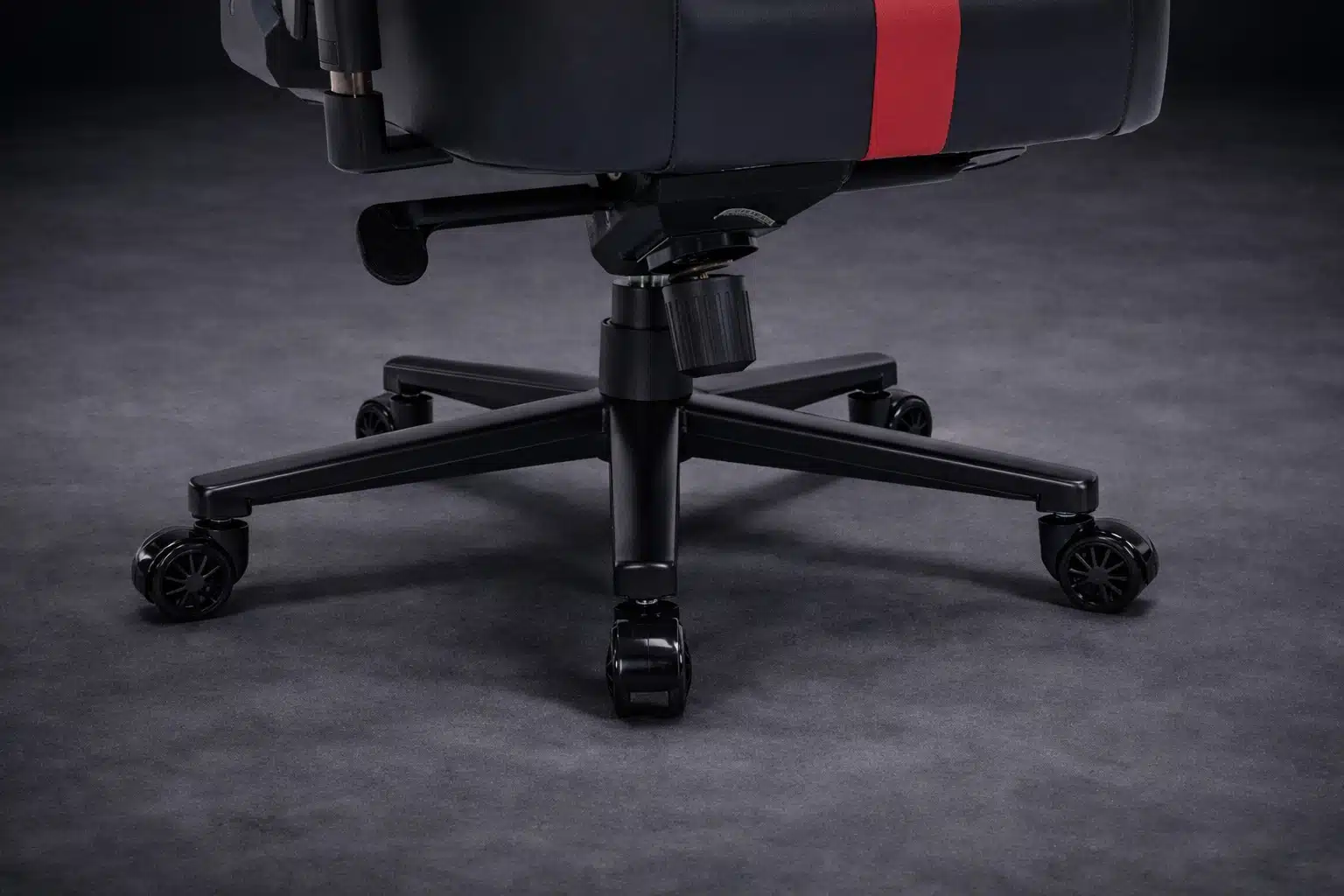 Non cerca il movimento. Lo sostiene. Struttura allargata, base a cinque razze rinforzate, sedile piatto ad alta densità. Per chi ha bisogno di un centro di gravità saldo e lavora molte ore in postazione fissa.