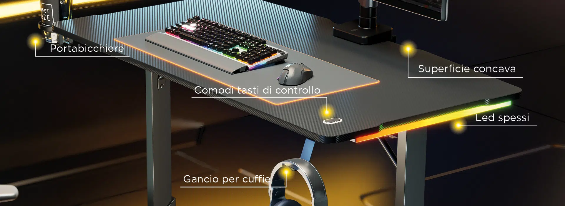Dotata di un’illuminazione RGB vibrante e di una robusta capacità di carico di 100kg (220 libbre), unisce funzionalità e stile.