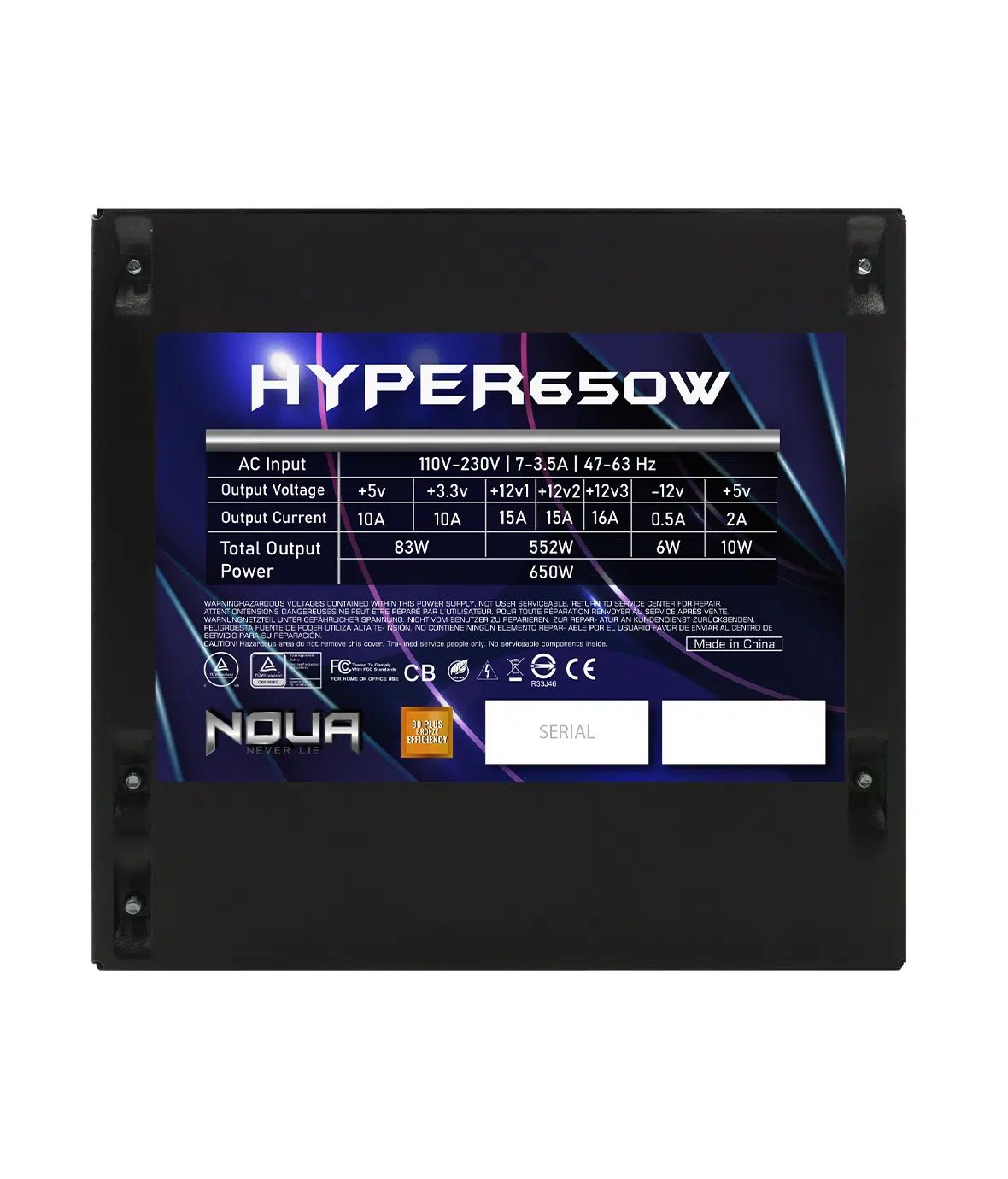Noua Hyper ZR65 e un alimentatore ATX 80 PLUS BRONZE, raggiungendo fino all’85% di efficienza elettrica, riducendo la generazione di calore e i costi operativi.