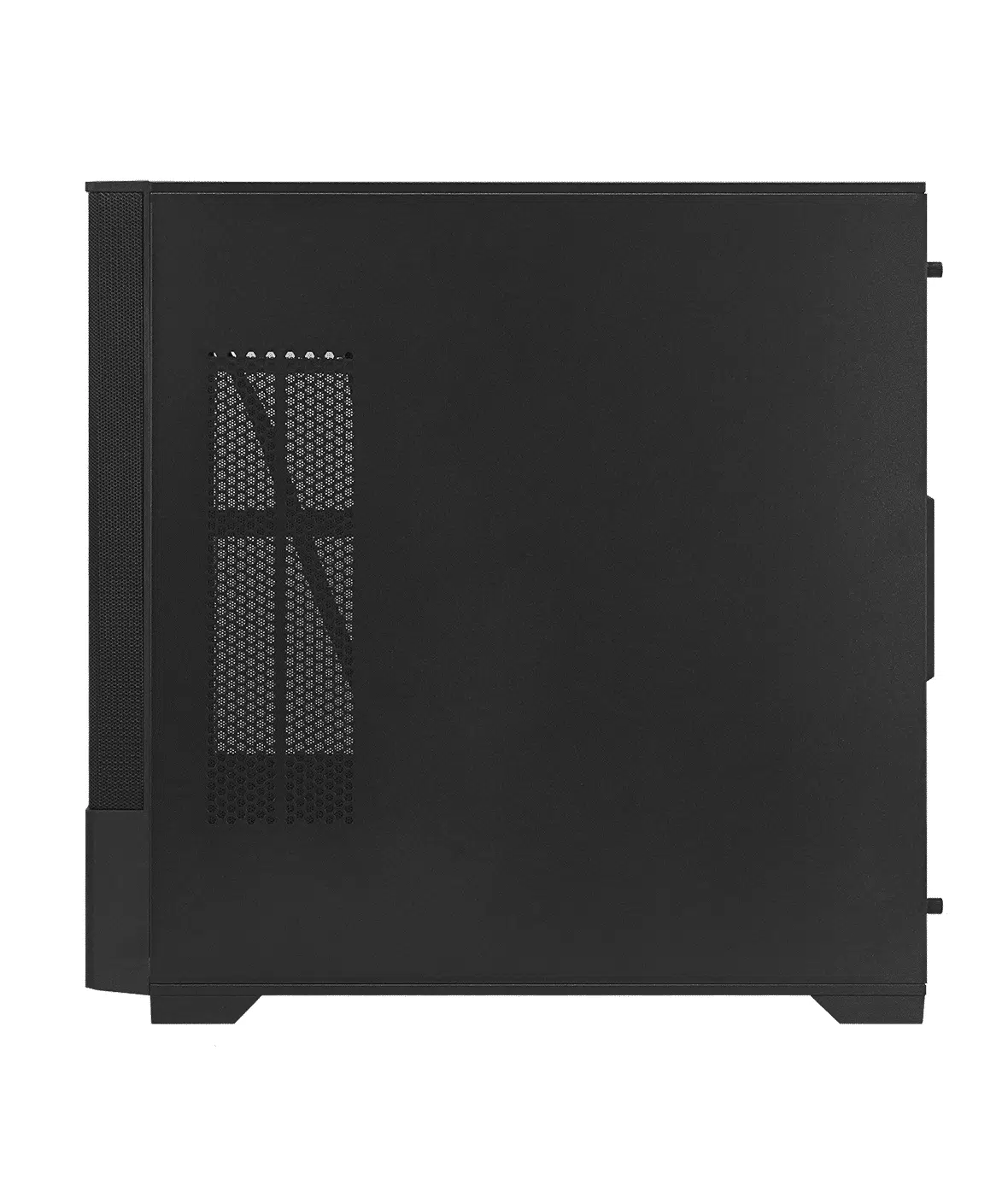 Il Case è di compatte dimensioni e può ospitare Dissipatori ad Aria fino a 165 mm e Schede Video con una lunghezza massima di 384 mm; è previsto un cover in metallo per coprire l’alimentatore e avere una gestione dei cavi più pulita. Sui pannelli superiore, inferiore e laterale del case sono presenti filtri anti-polvere, quelli superiore e laterale magnetici.
