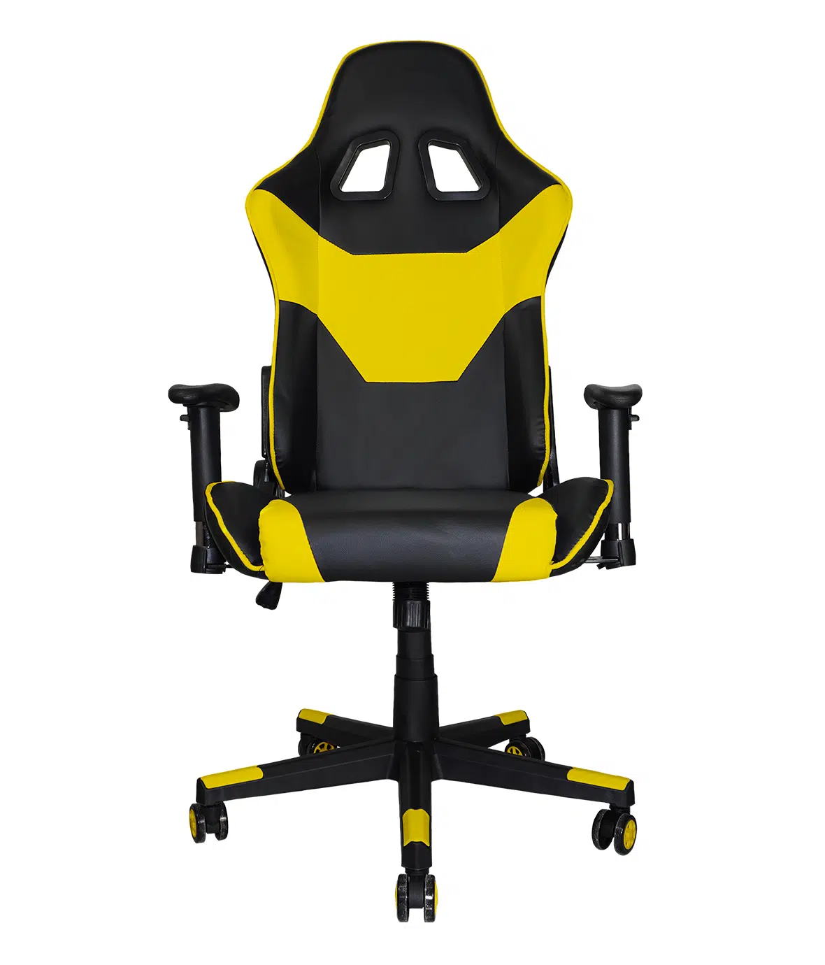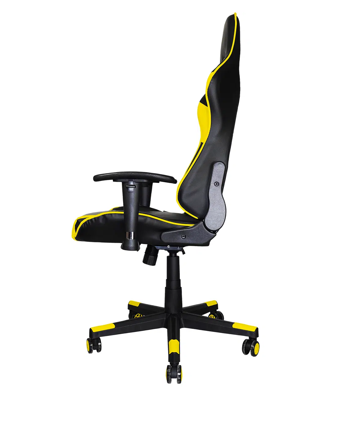 La sedia presenta due cuscini per il supporto testa e lombare nonche logo di colore giallo.