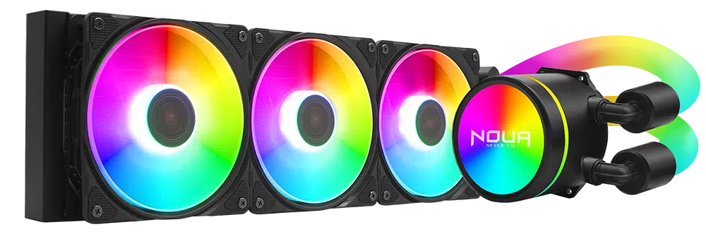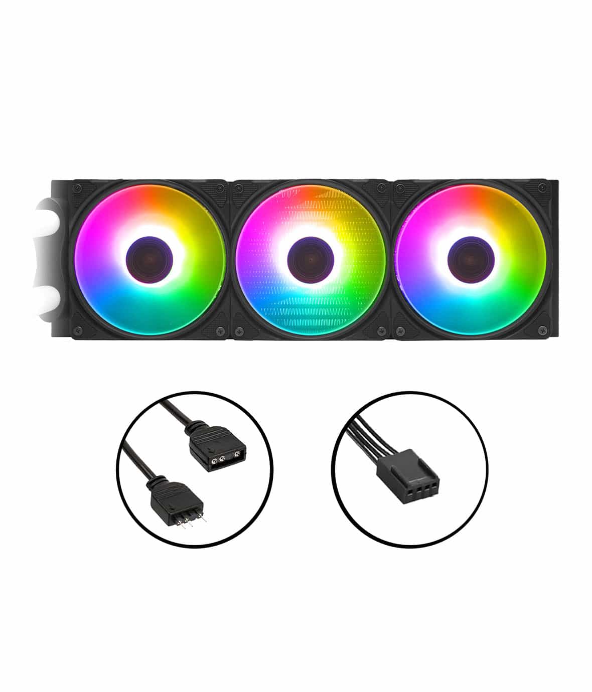 3 ventole da 120mm PWM e Waterblock ruotabile di 360 gradi.