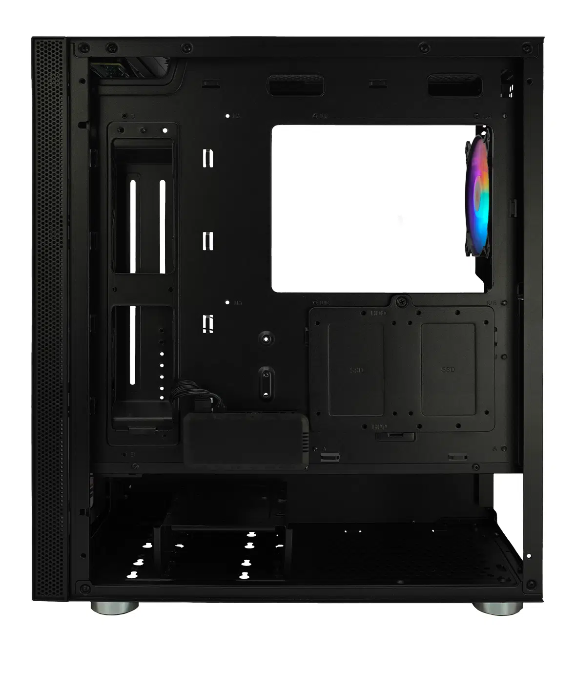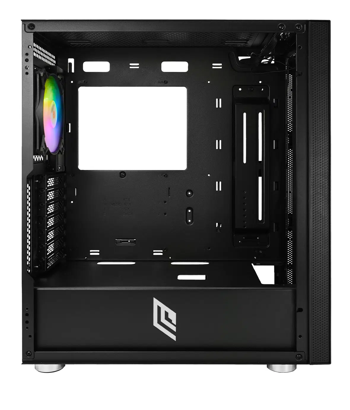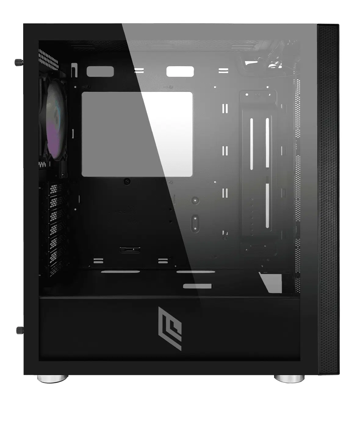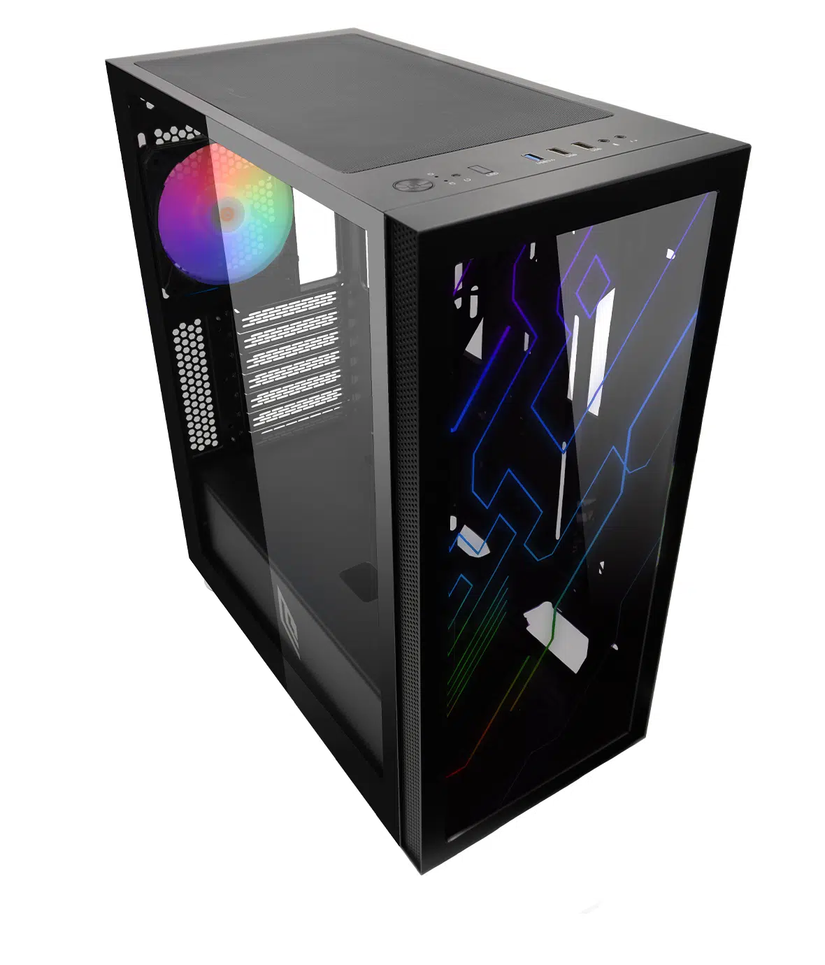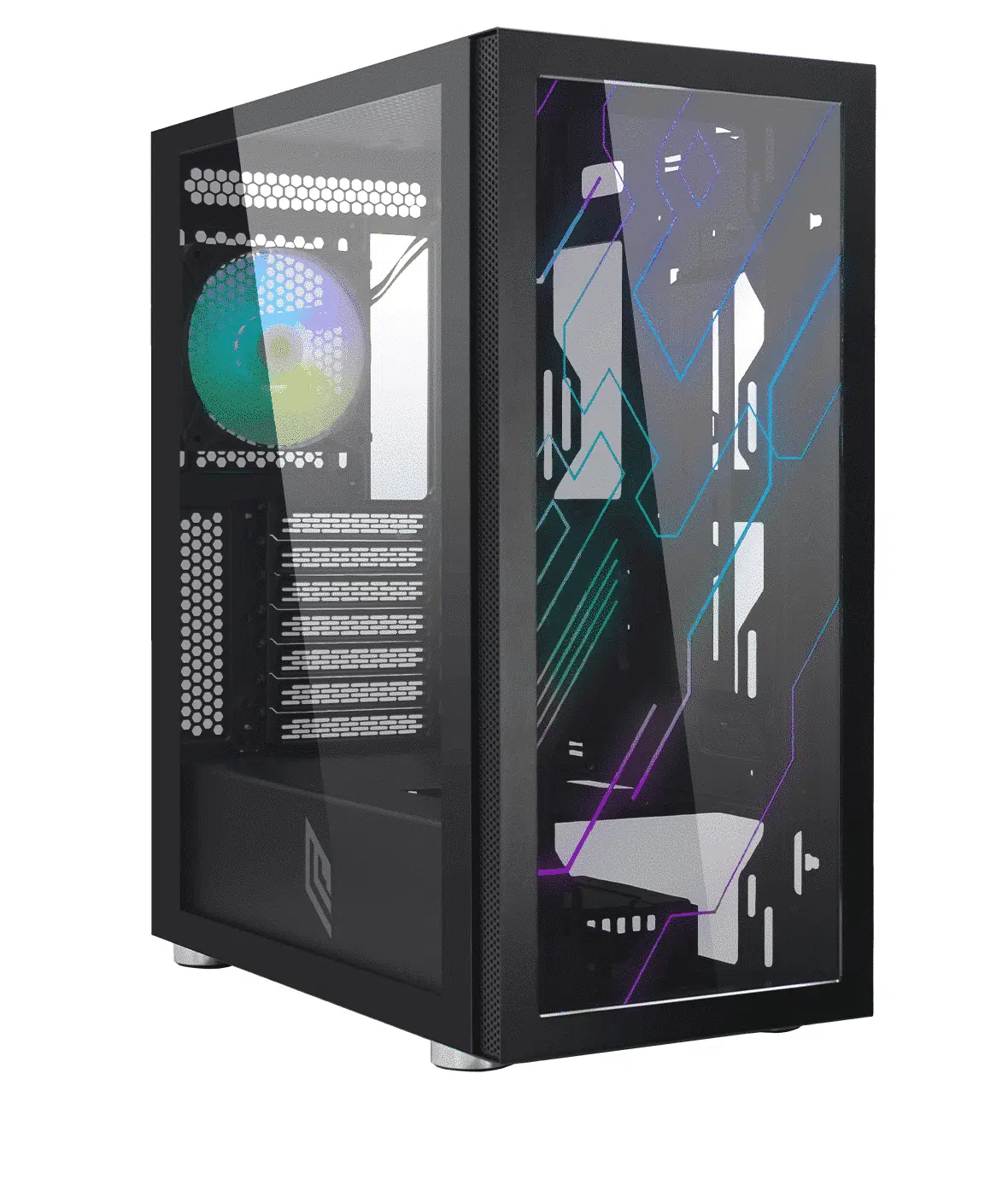 Case Mid Tower ideale per chi desidera esprimere la propria personalità e il proprio stile in modo sofisticato. Il Case con frontale inciso a laser ARGB e pannello laterale in vetro temperato.